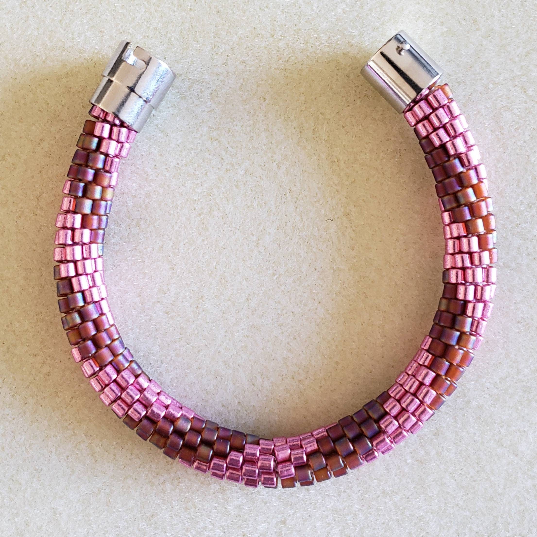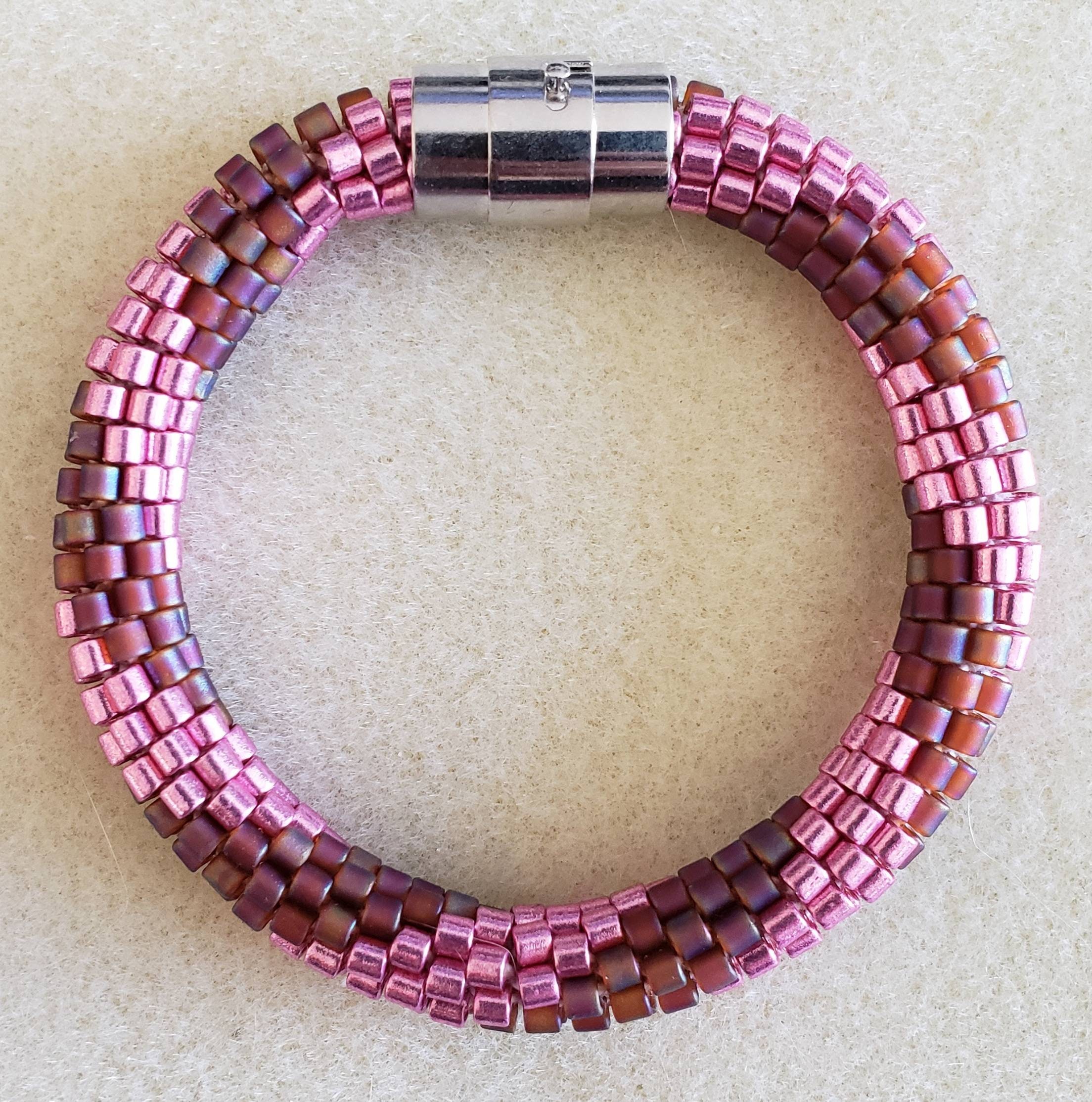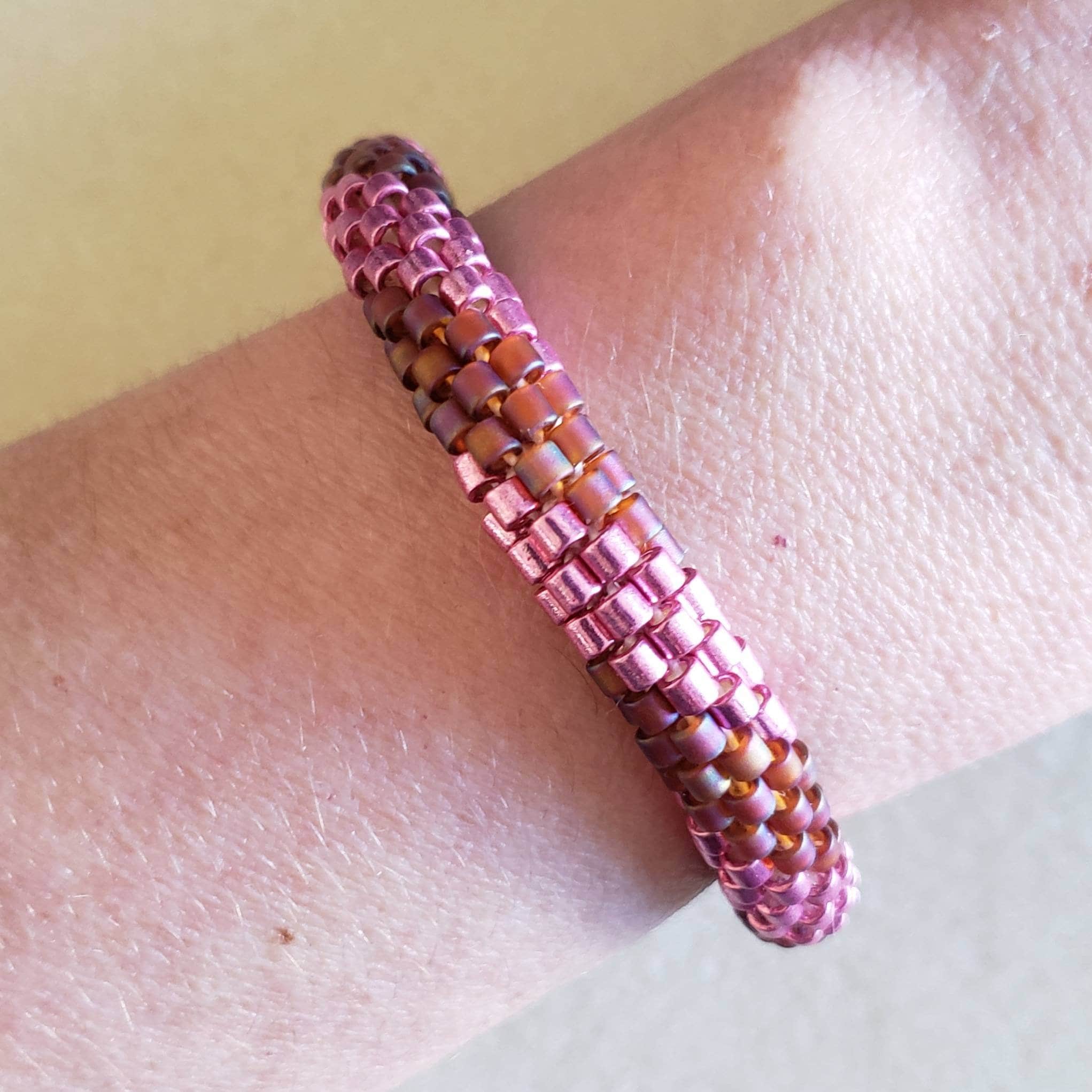 I think the contrast of shiny and matte beads makes this bracelet so very pretty. The matte beads have a sort of rainbow color to them, and it just adds to how special this bracelet really is.