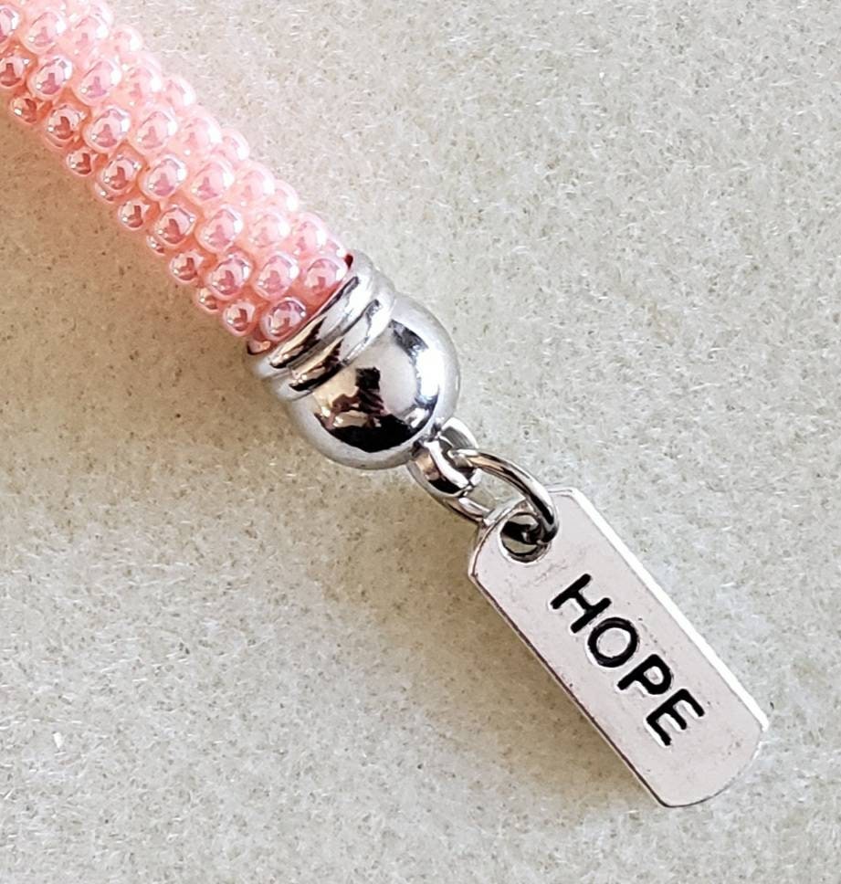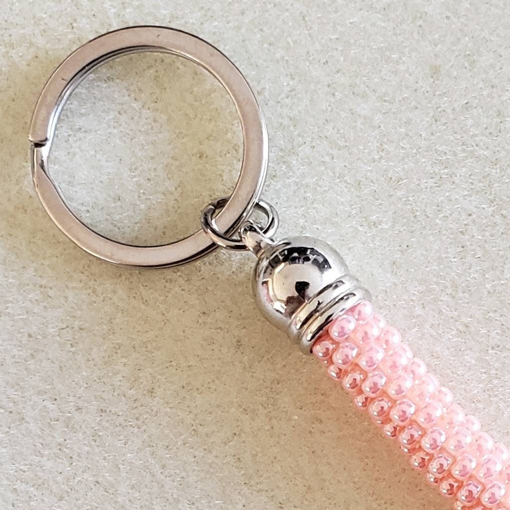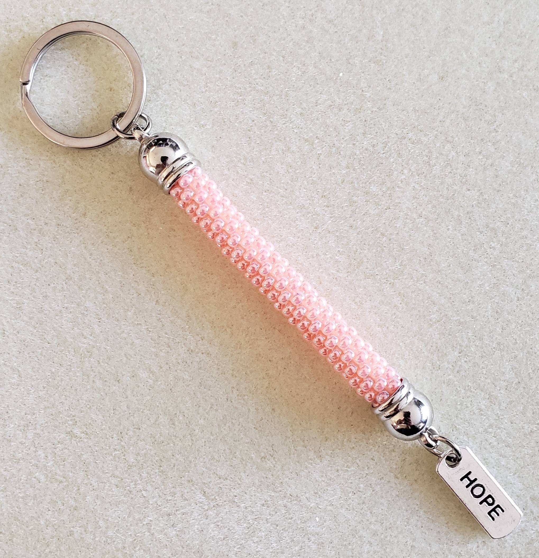 This keychain measures between 4.5 and 5 inches. It is made from high quality glass seed beads and finished off with silver findings and a motivational charm.