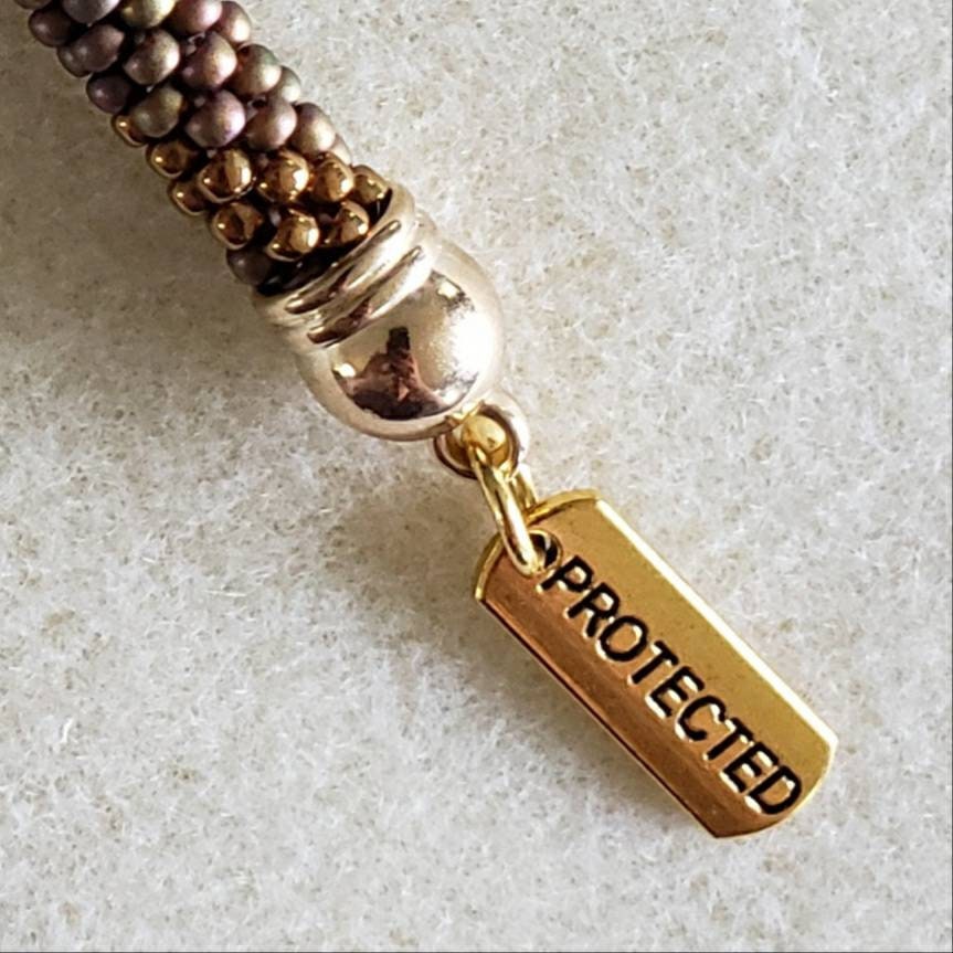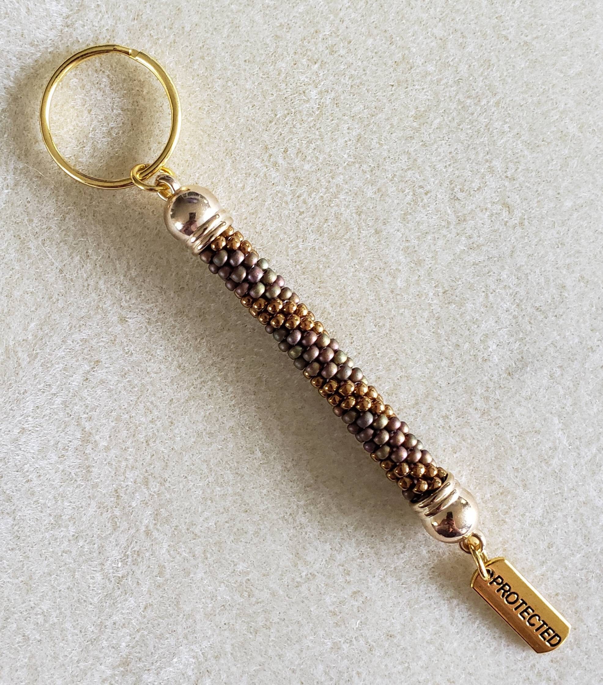 This keychain measures between 4.5 and 5 inches. It is made from high quality glass seed beads and finished off with gold tone findings and a motivational charm.