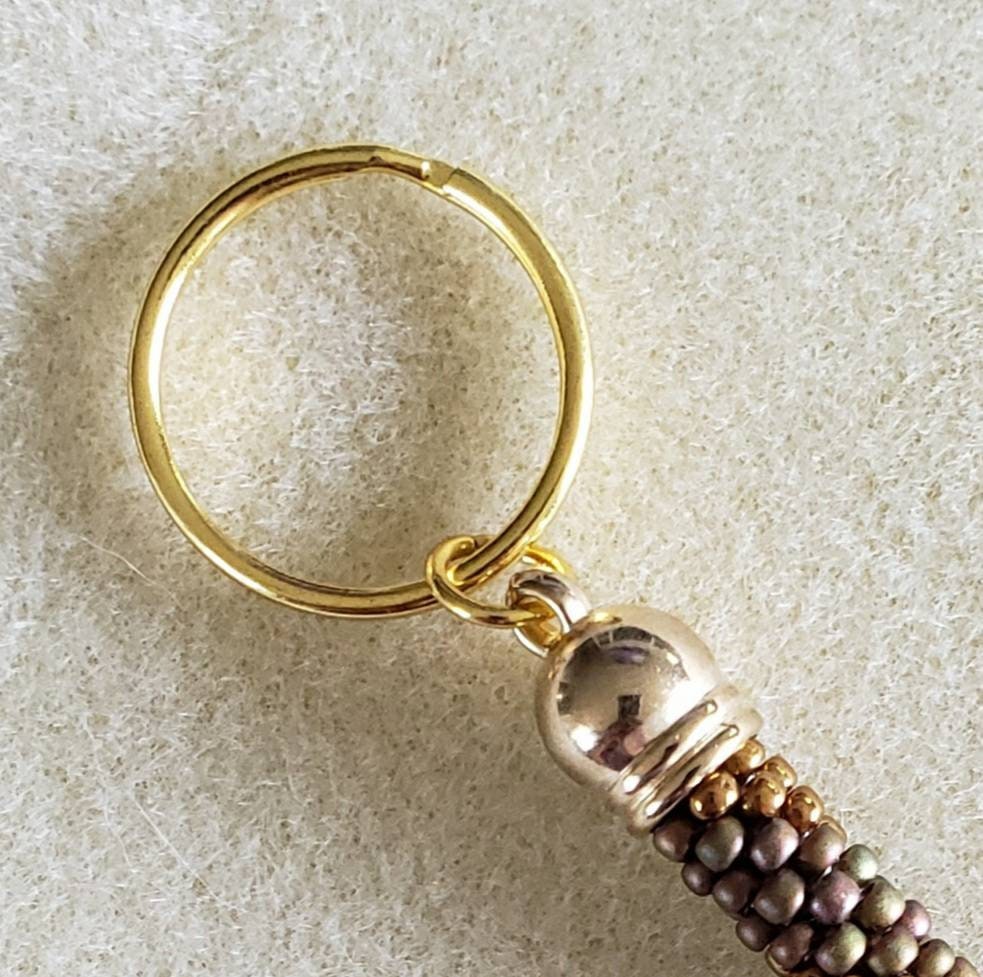 I just love fall and this keychain reminds me of the end of fall. All the leaves on the ground in every shade of brown crunching under your feet as you go home to have hot cider or a fragrant fall tea with all the spices of the season.
