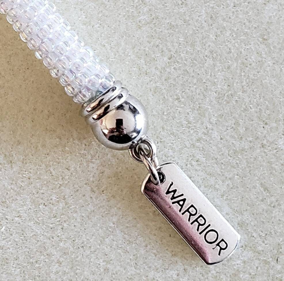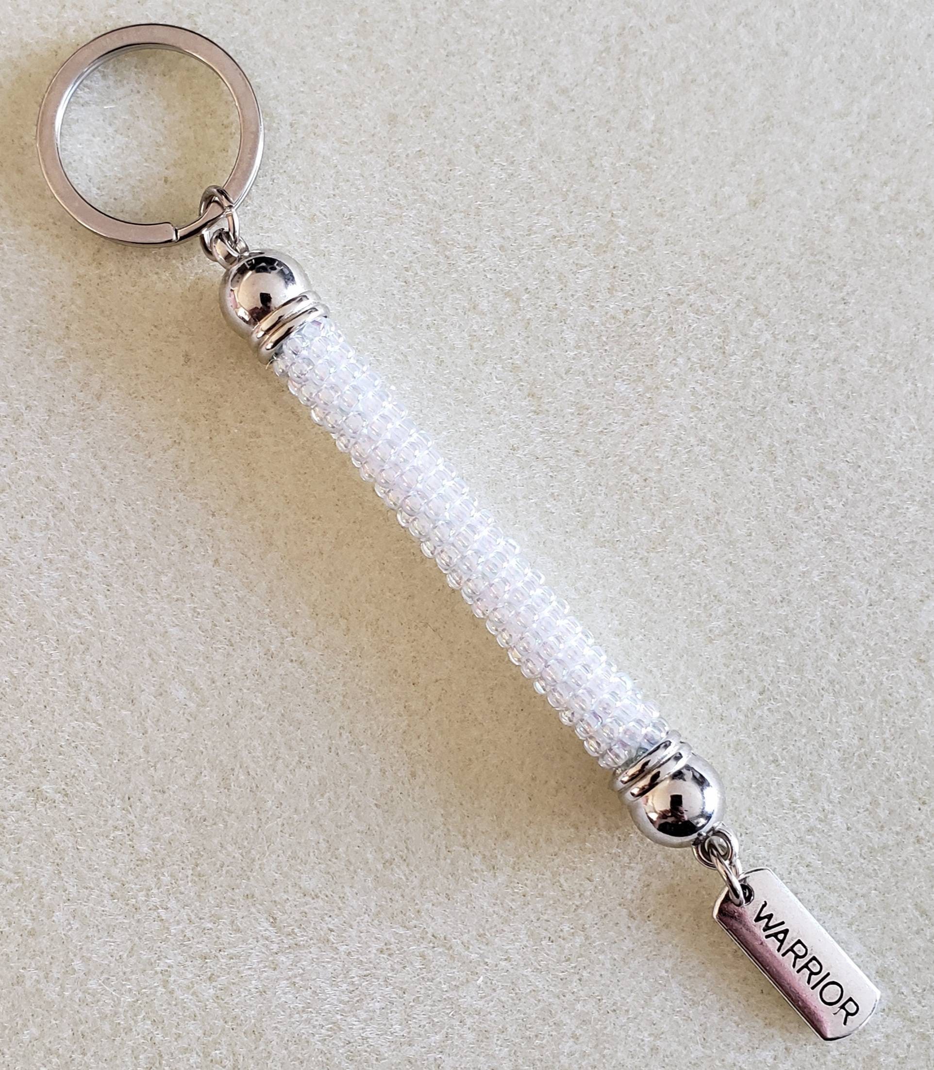 This keychain measures between 4.5 and 5 inches. It is made from high quality glass seed beads and finished off with silver findings and a motivational charm.