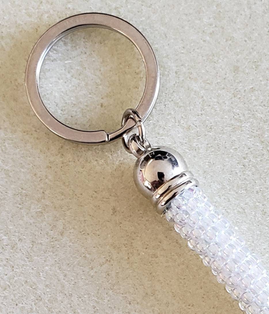 This keychain reminds me of a beautiful snowfall when you can just see very light rainbow colors in the freshly fallen blanket of snow.