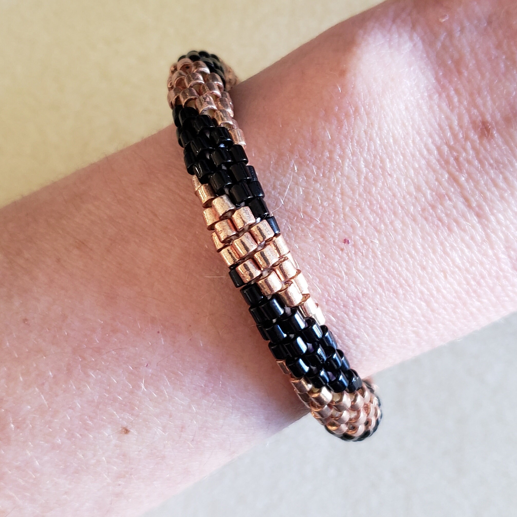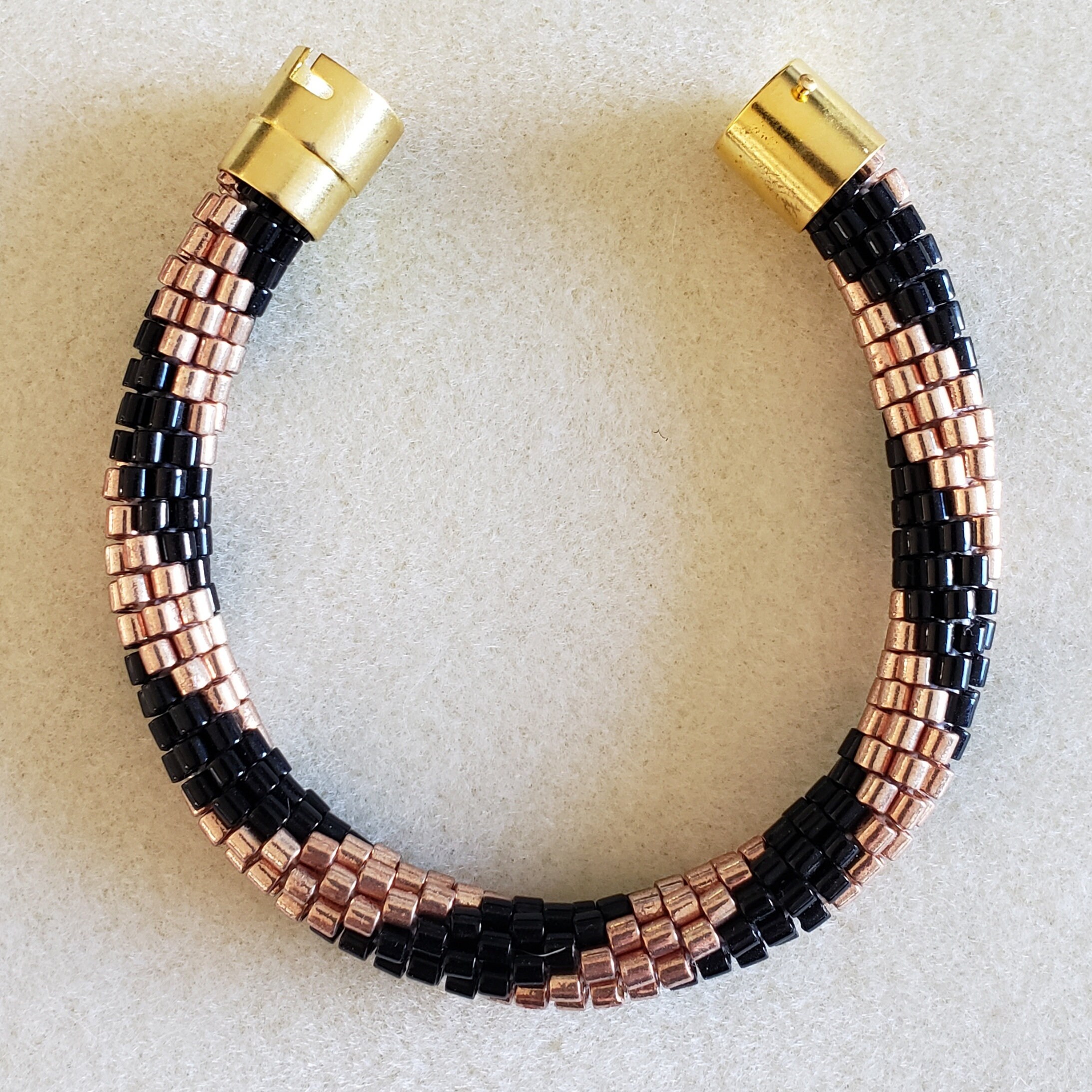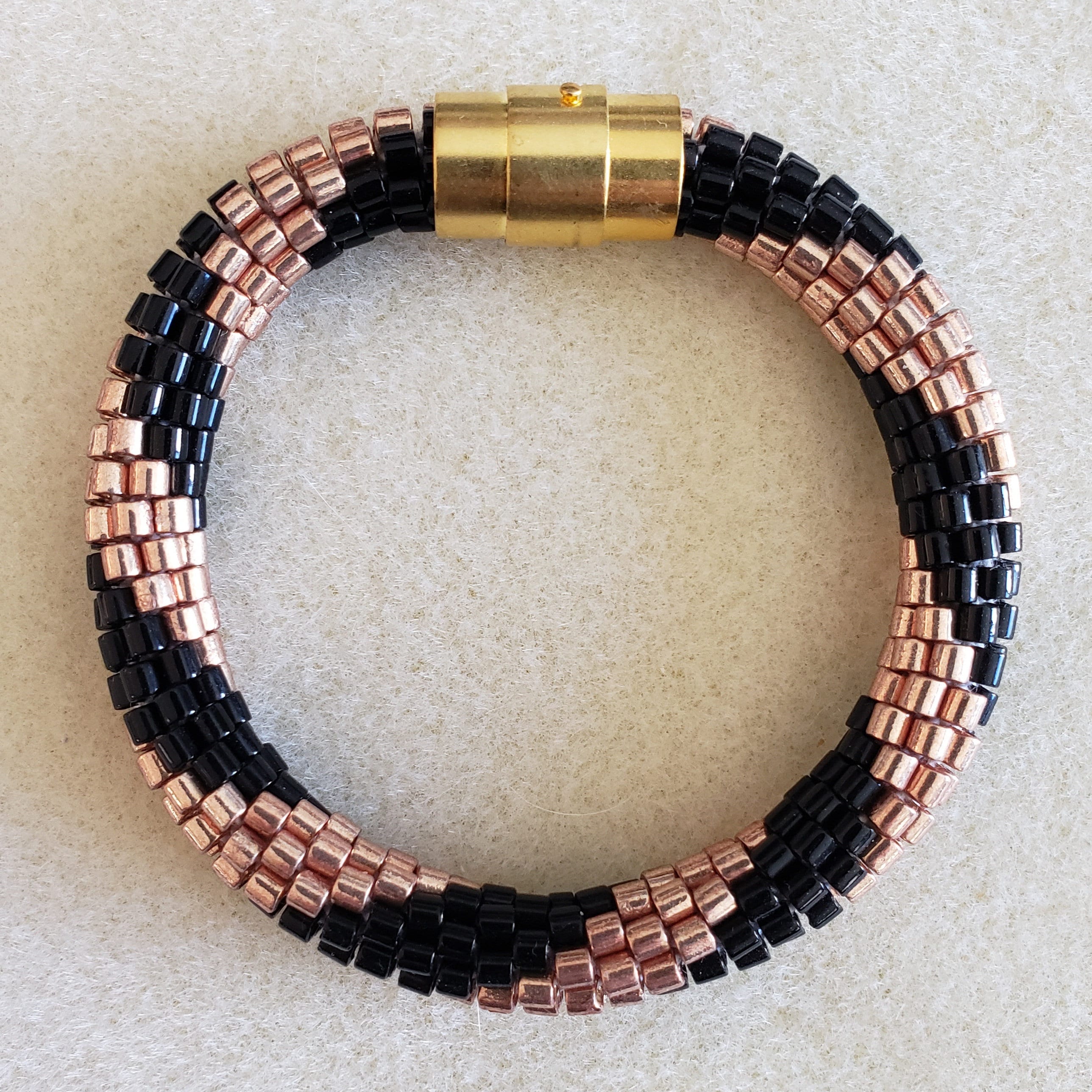 Black and Gold is such an elegant combination. This bracelet can be worn with a beautiful black pantsuit or the perfect "little black dress", or even with jeans and a black t-shirt. It is sure to be a go to piece in your jewelry collection.