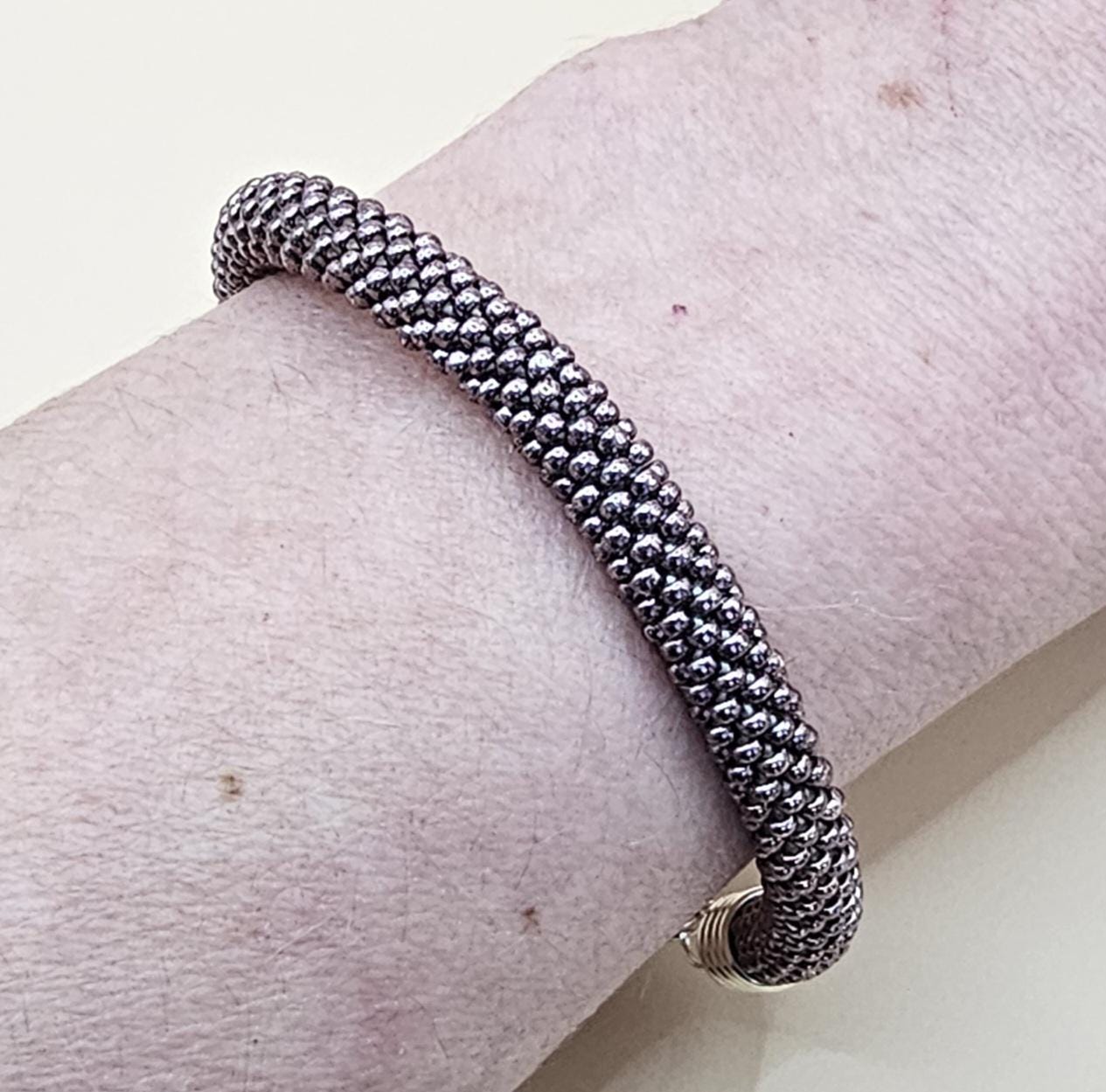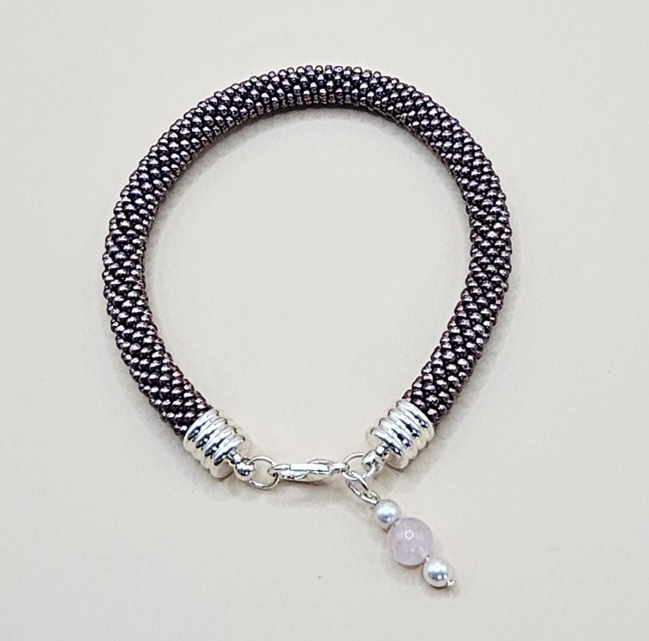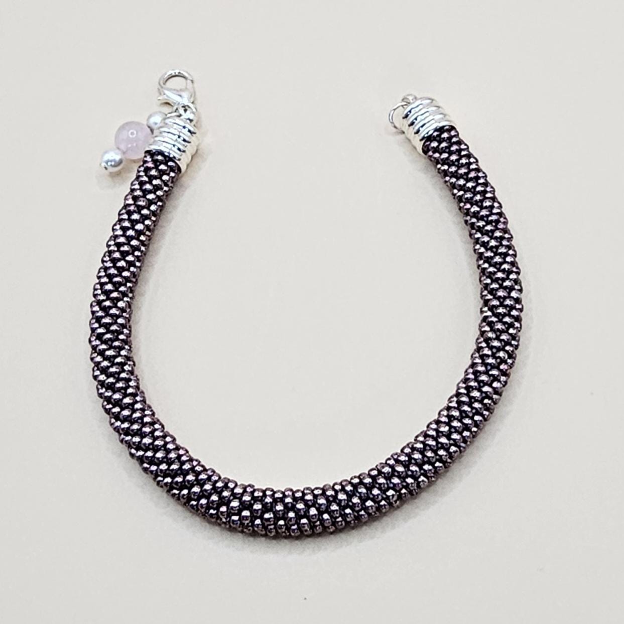 Crocheted Beaded Charm Bracelet: Soft Metallic Plum