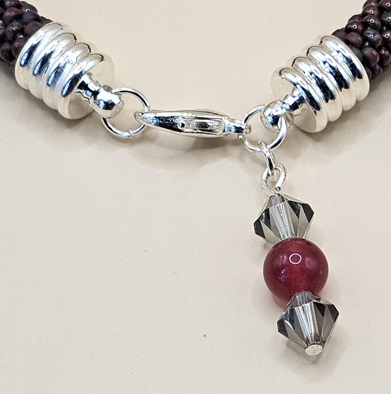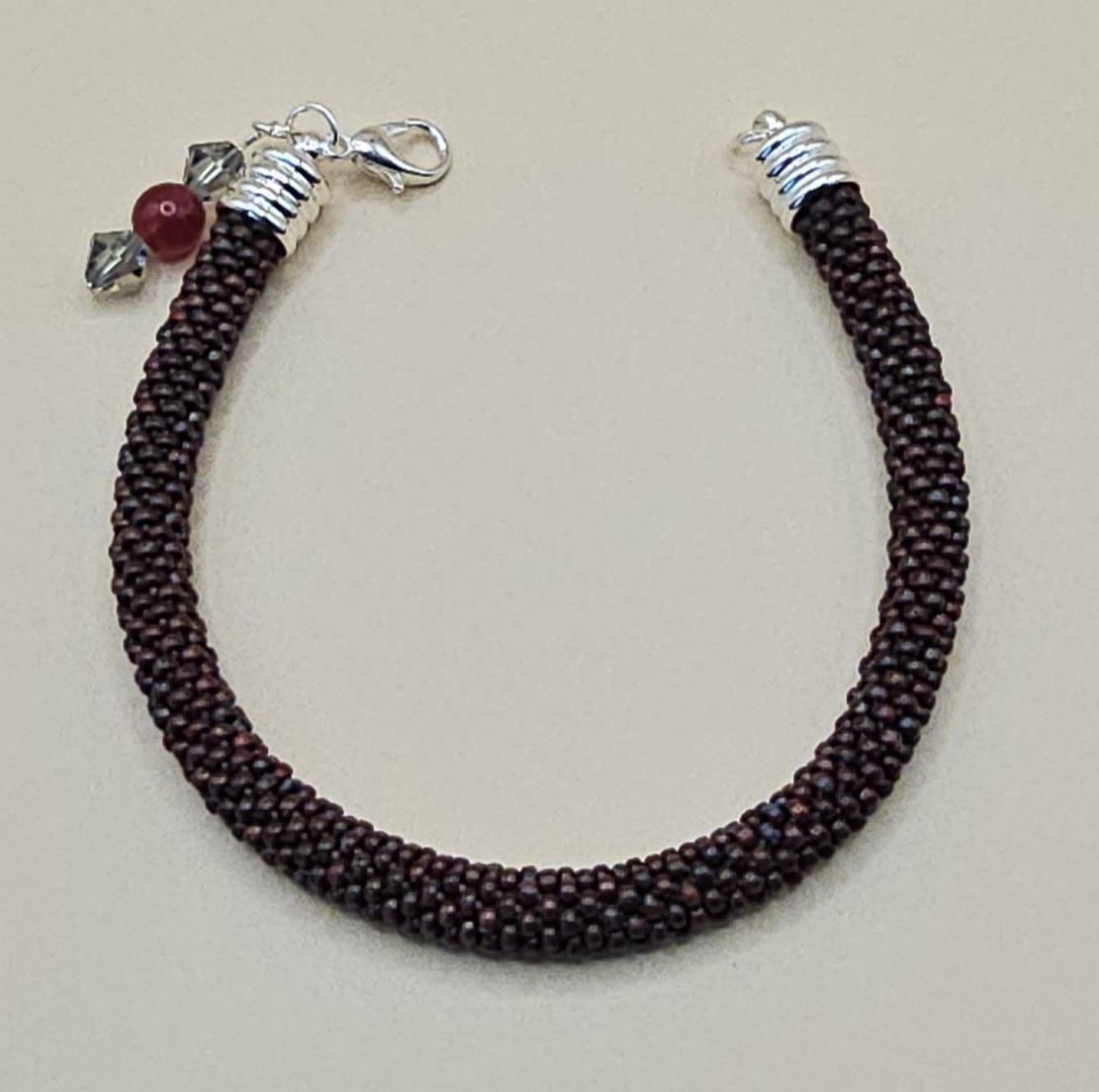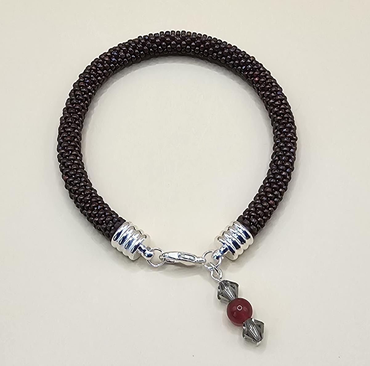 This bracelet measures 7.5 inches including the clasp. It is made from high quality glass seed beads and finished off with a lobster claw clasp. Also features a beautiful crystal beads as the charm.