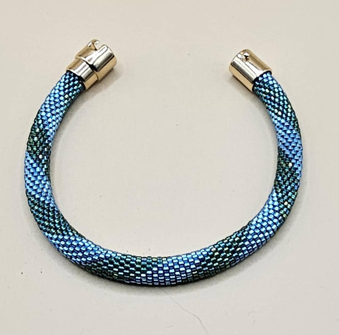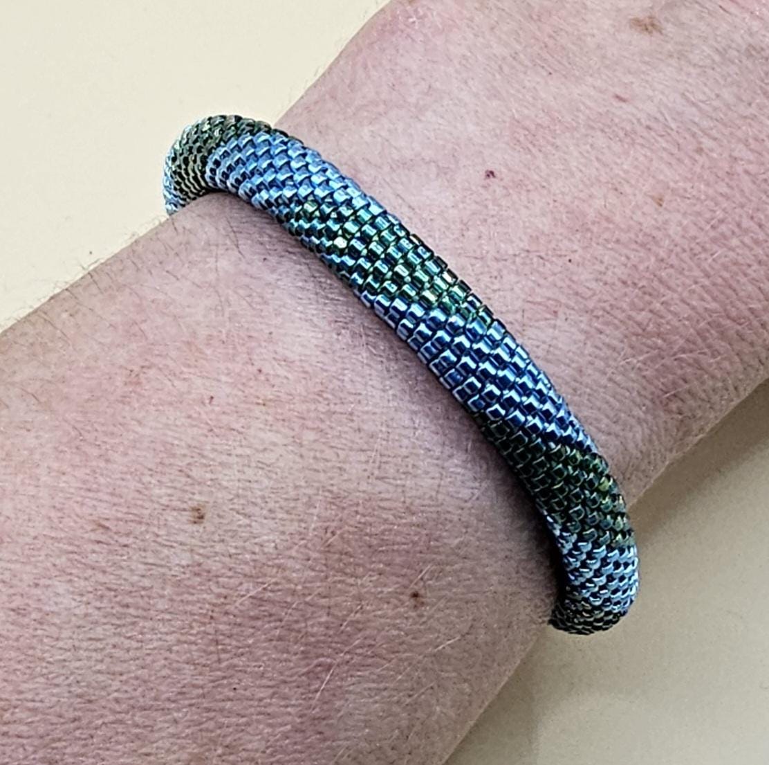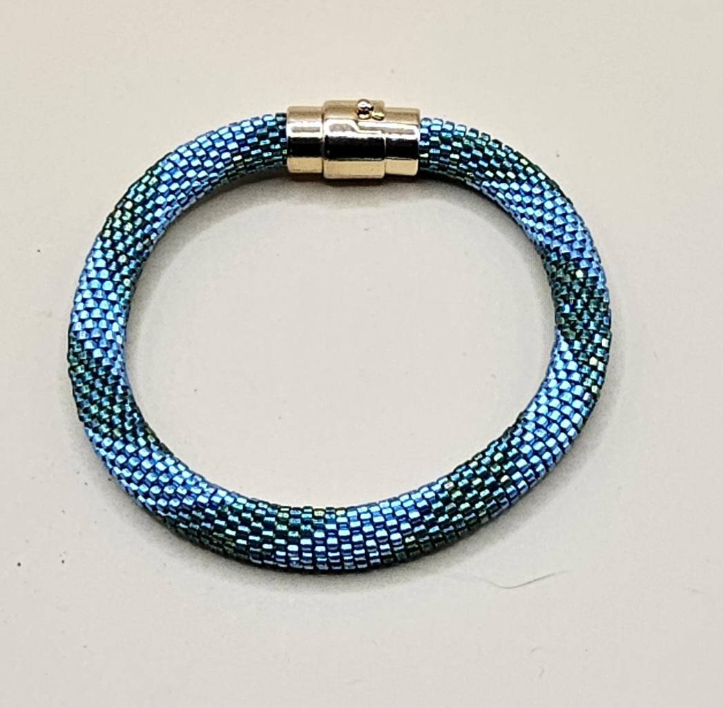 This bracelet measures 7.5 inches including the clasp. It is made from high quality glass seed beads and finished off with a magnetic safety clasp. One small twist and your bracelet is secure.