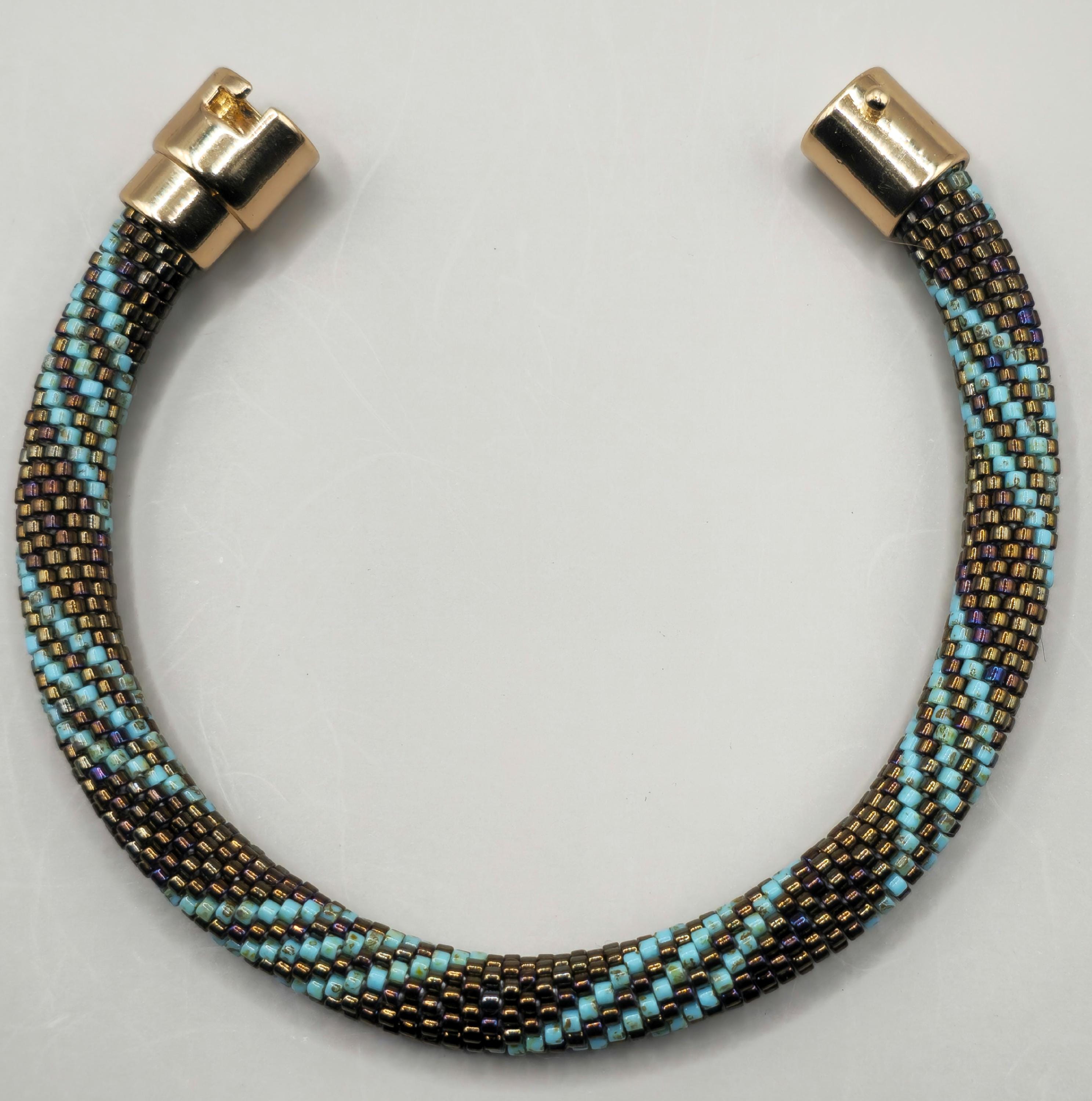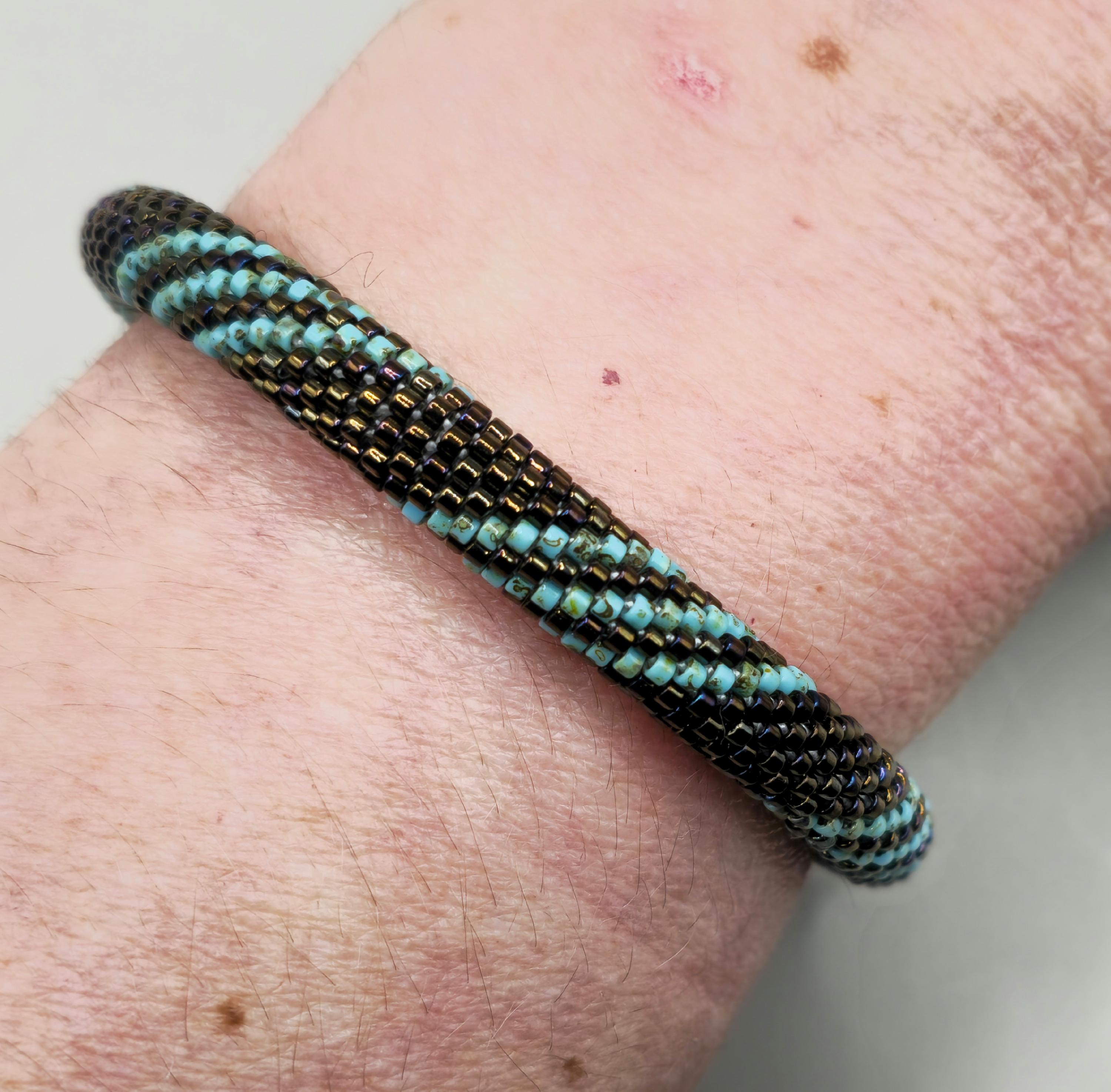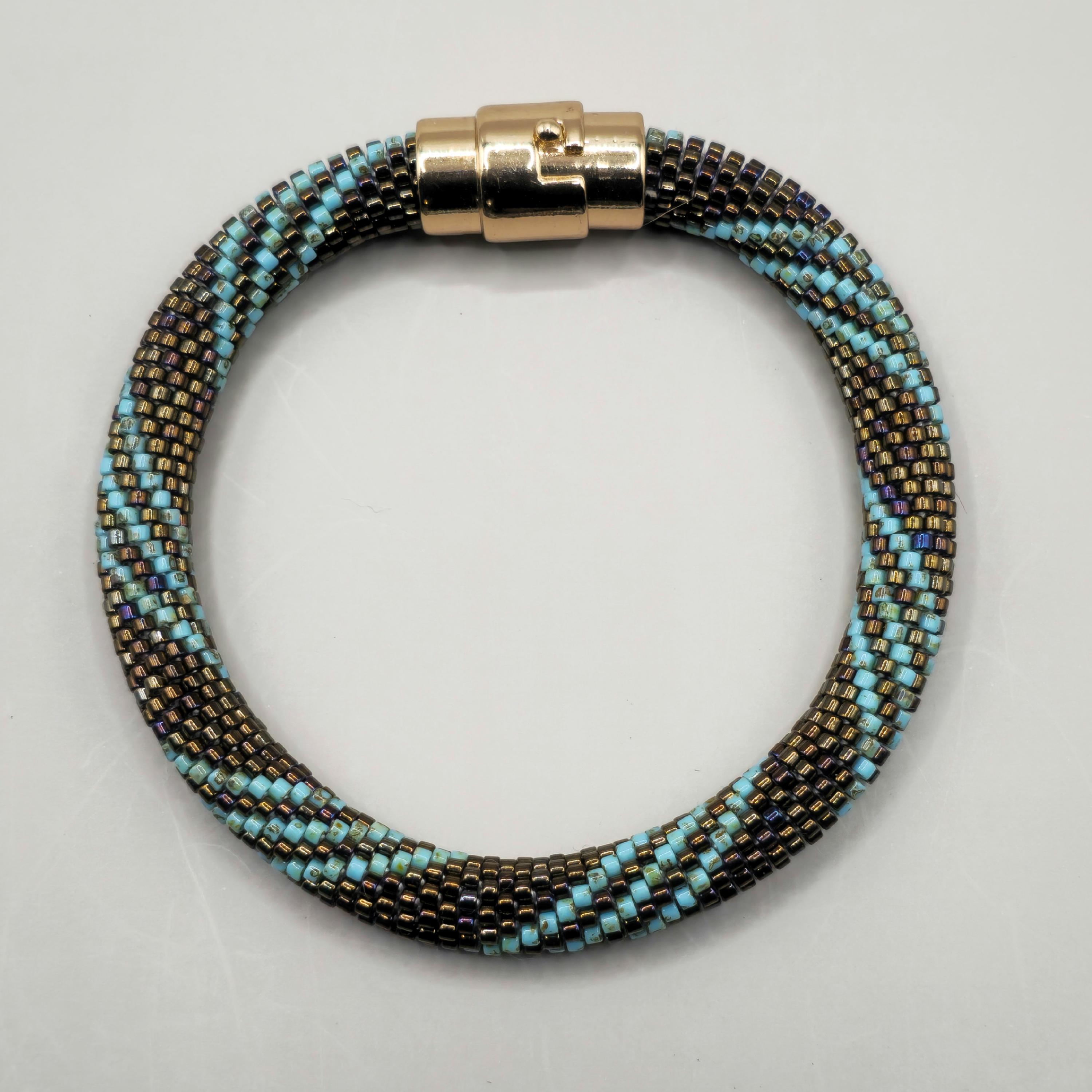 This bracelet measures 7.5 inches including the clasp. It is made from high quality seed beads and finished off with a safety magnetic clasp. One small twist and your bracelet is secure.