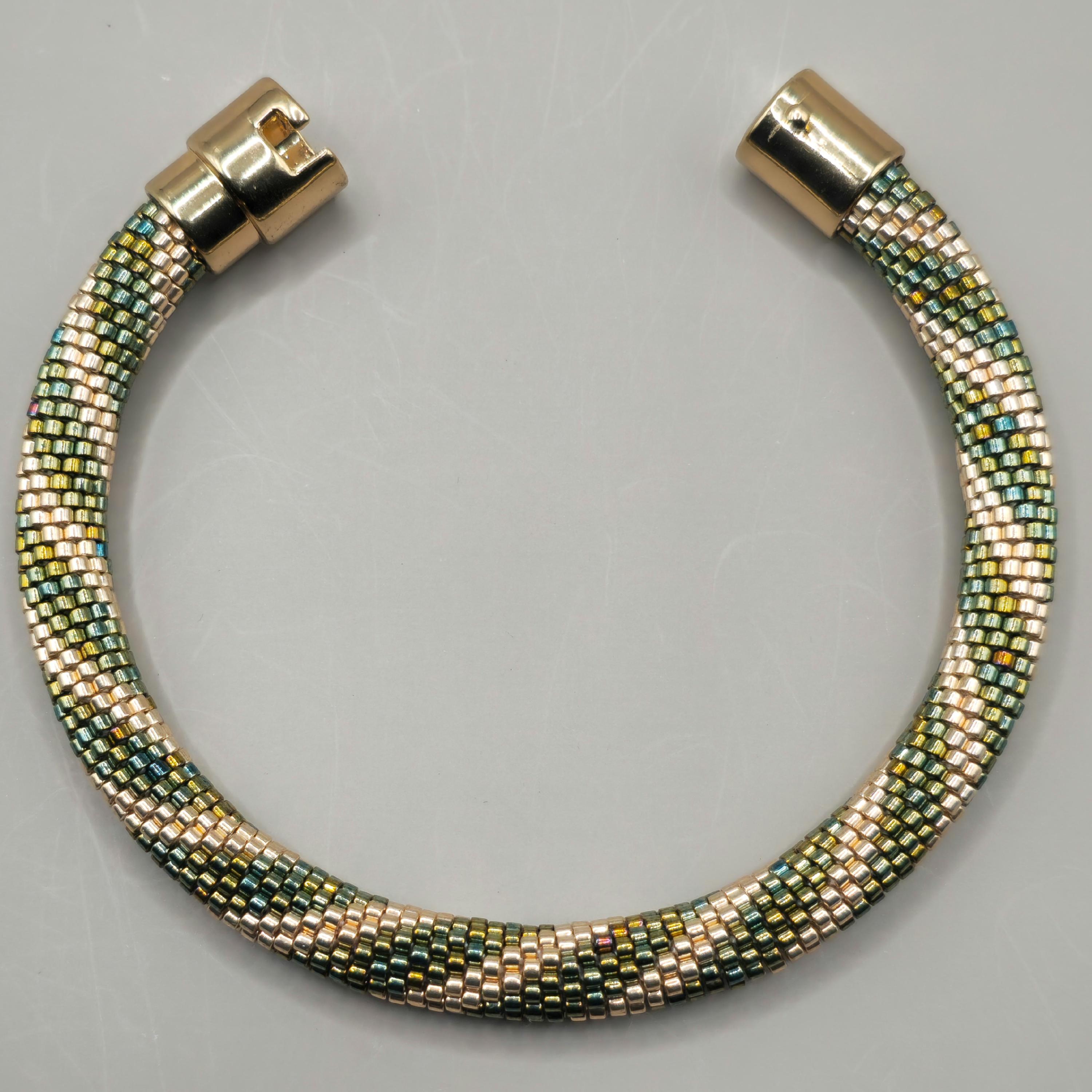 Soft, calming tones come together beautifully in the Gentle Jade crocheted beaded bracelet. Delicate jade-inspired beads are intricately hand-crocheted into a flexible strand, creating a smooth, elegant texture with subtle natural shimmer. The soothing green hues evoke a sense of balance and tranquility, making this bracelet a perfect everyday accessory.
