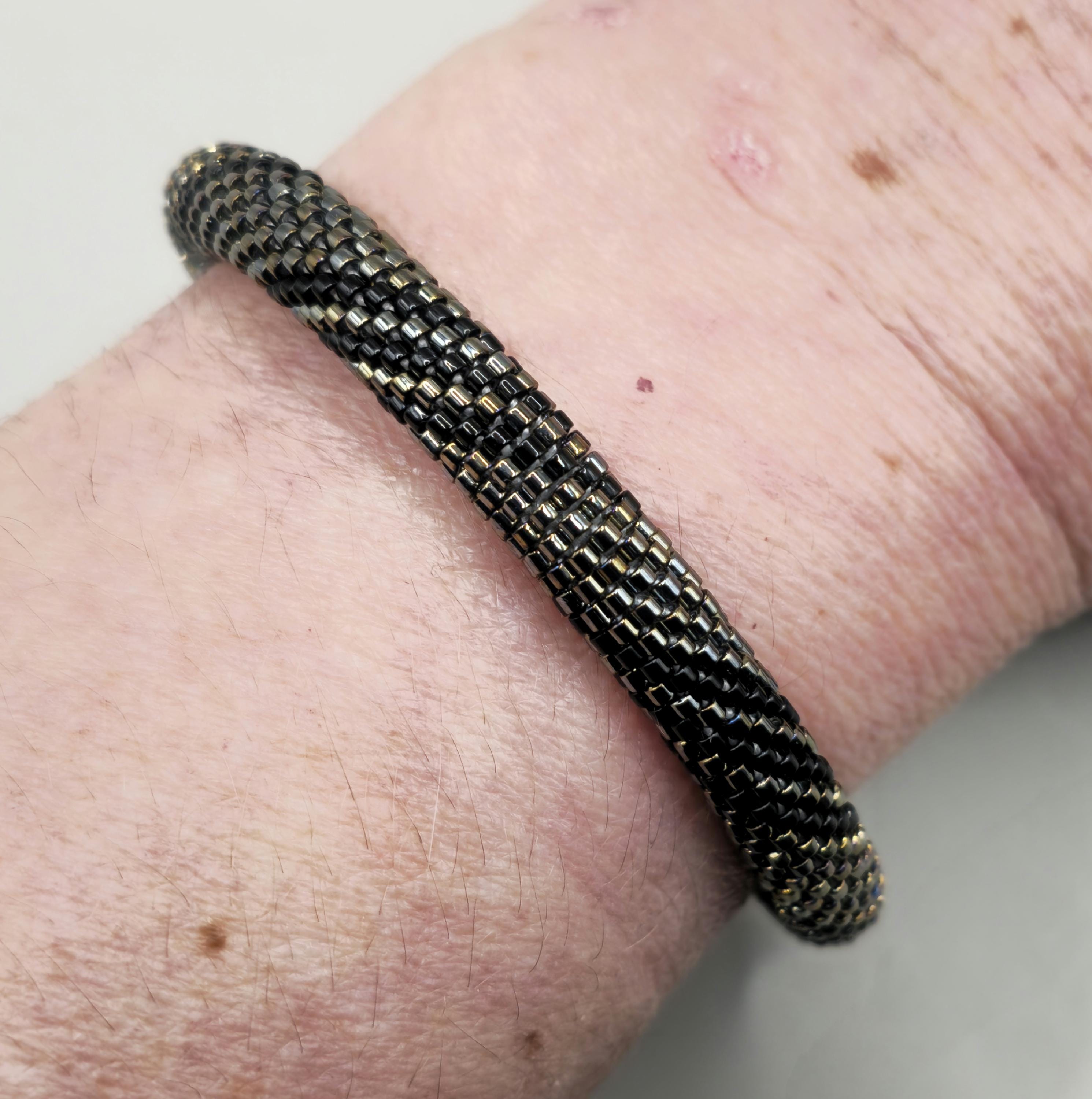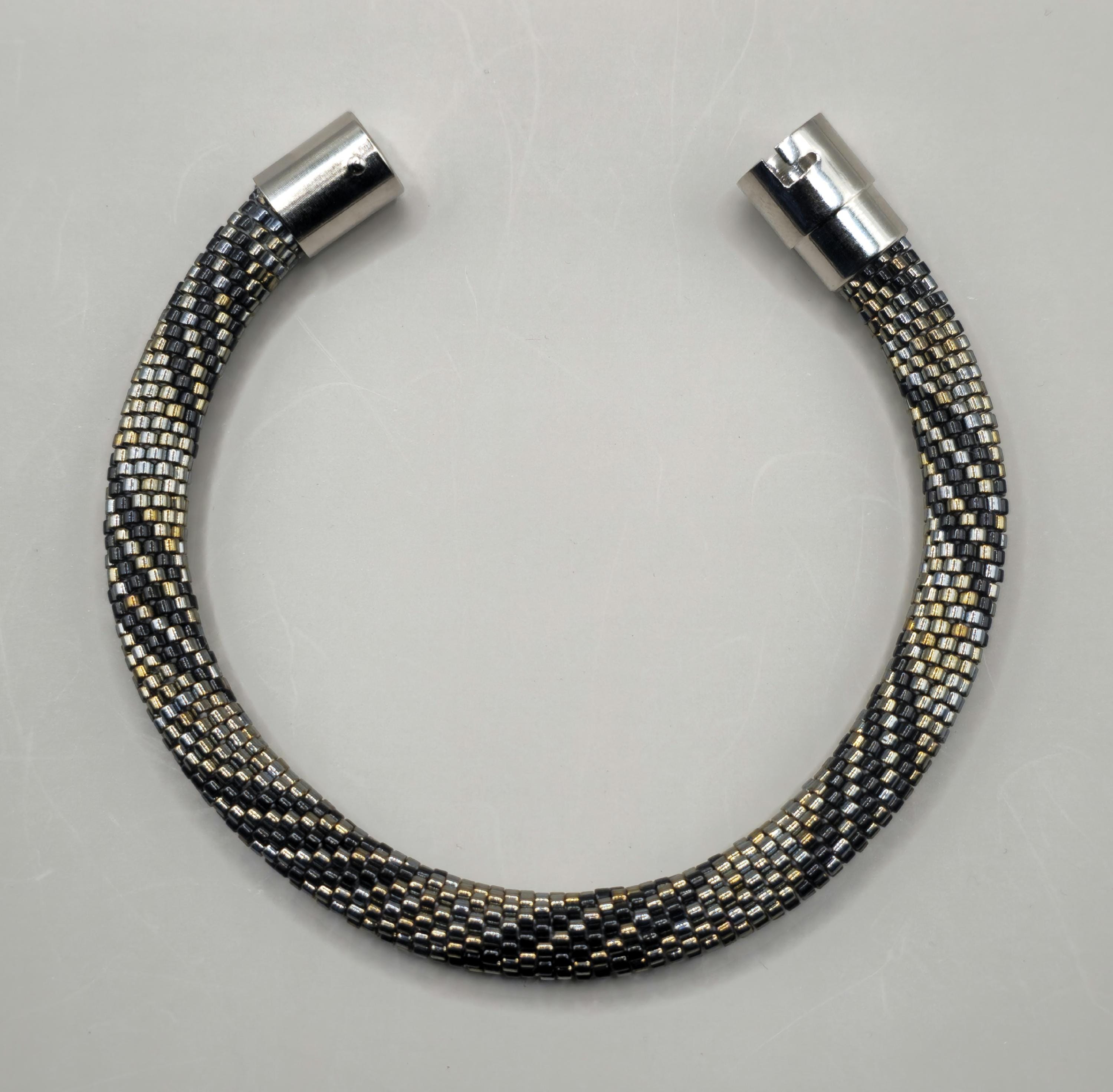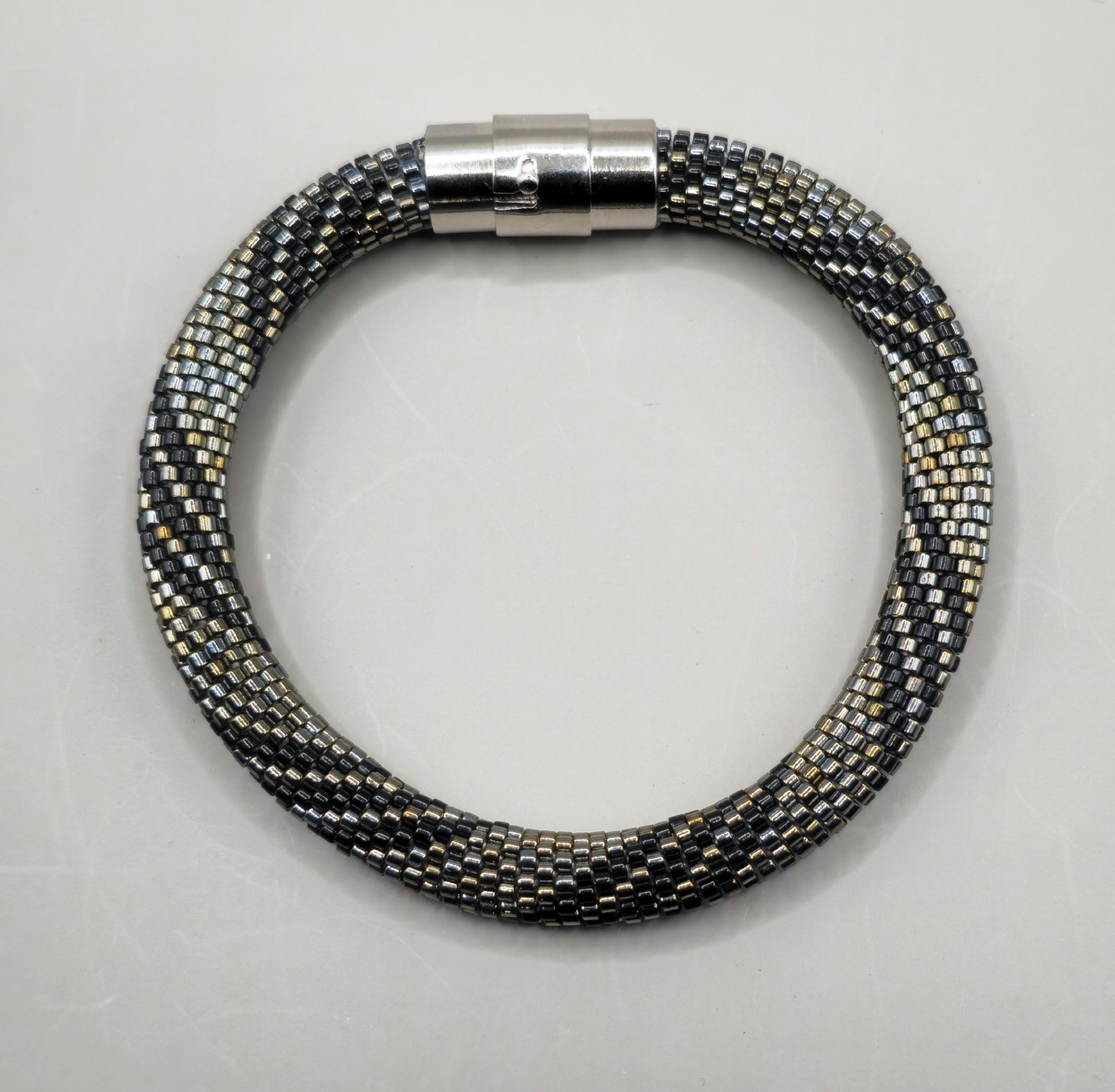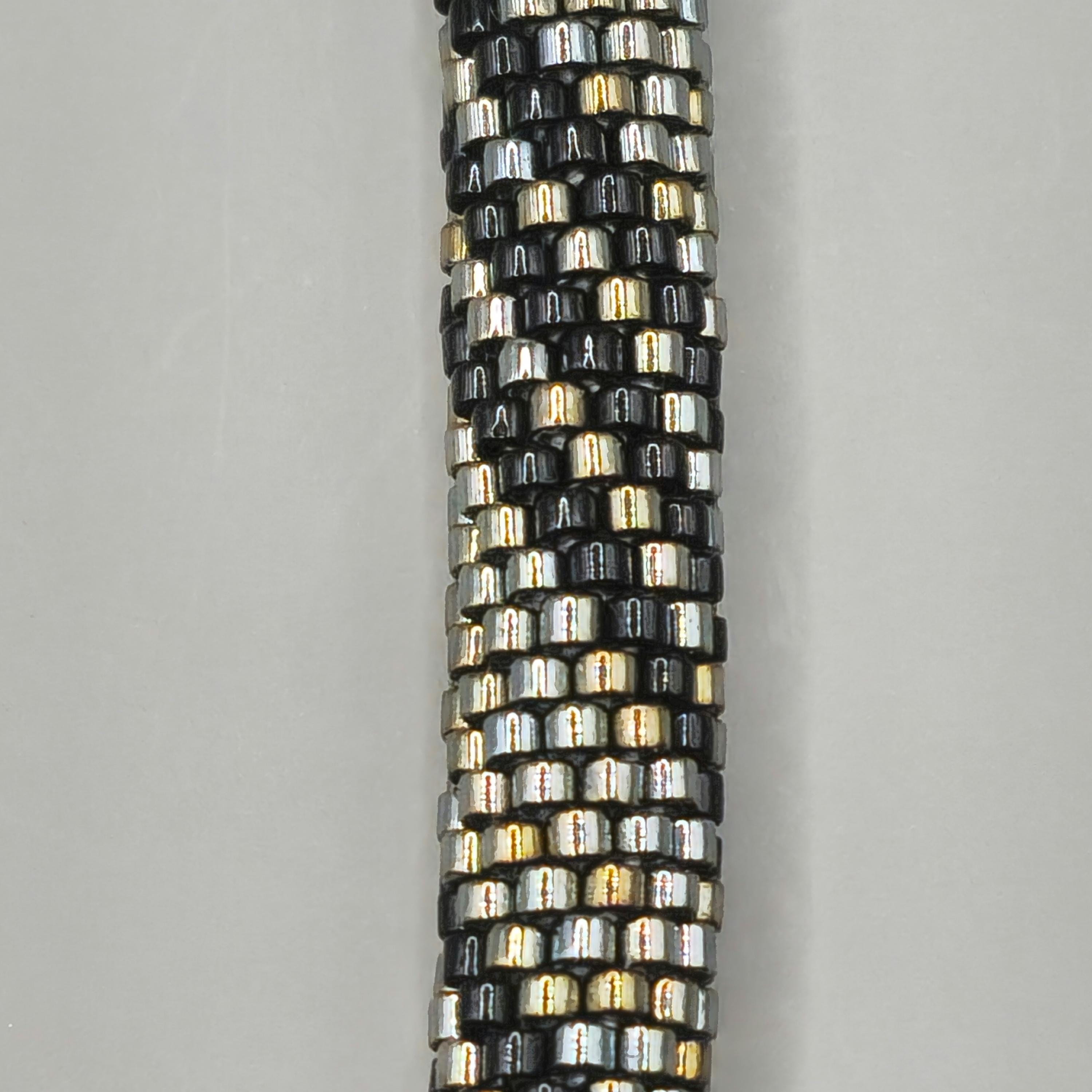 Bold yet refined, the Steel Works Crocheted Beaded Bracelet is inspired by the strength and beauty of industrial metals. Carefully handcrafted, this bracelet features shimmering metallic-toned beads intricately crocheted together to create a smooth, rope-like design that feels both durable and elegant.