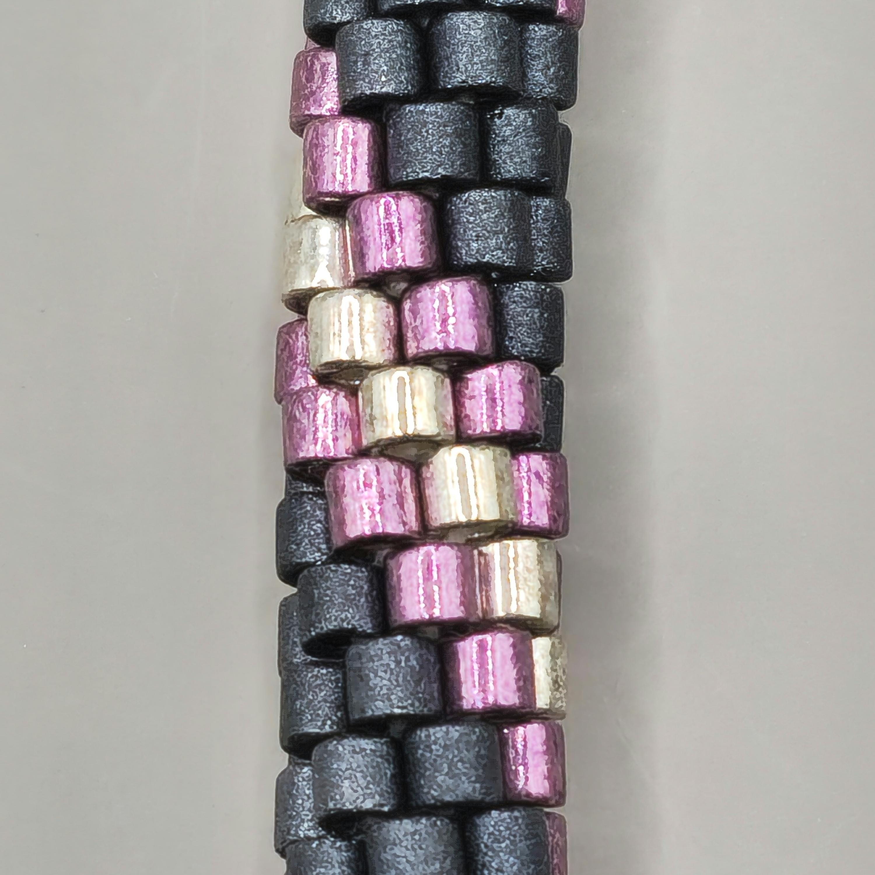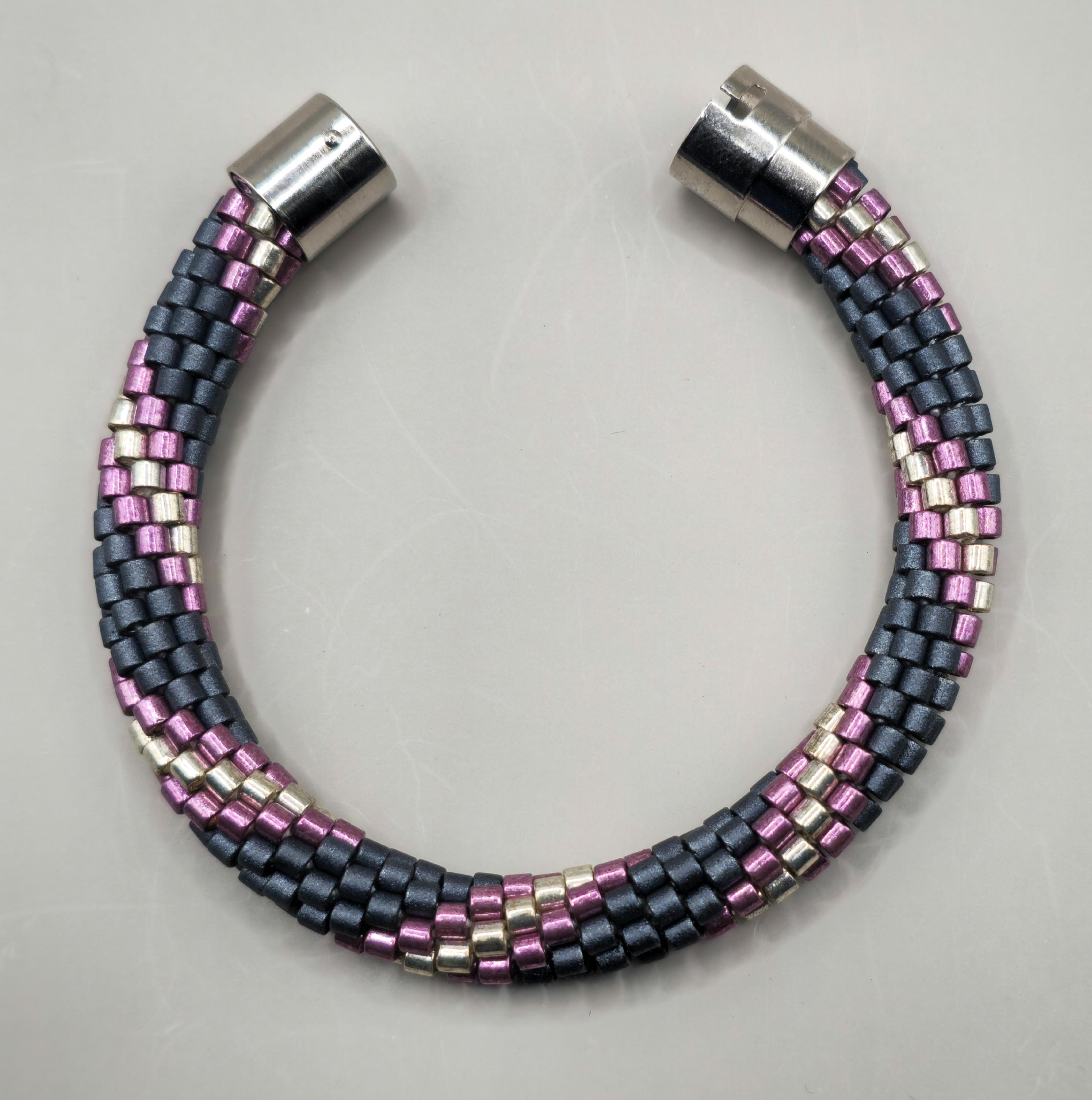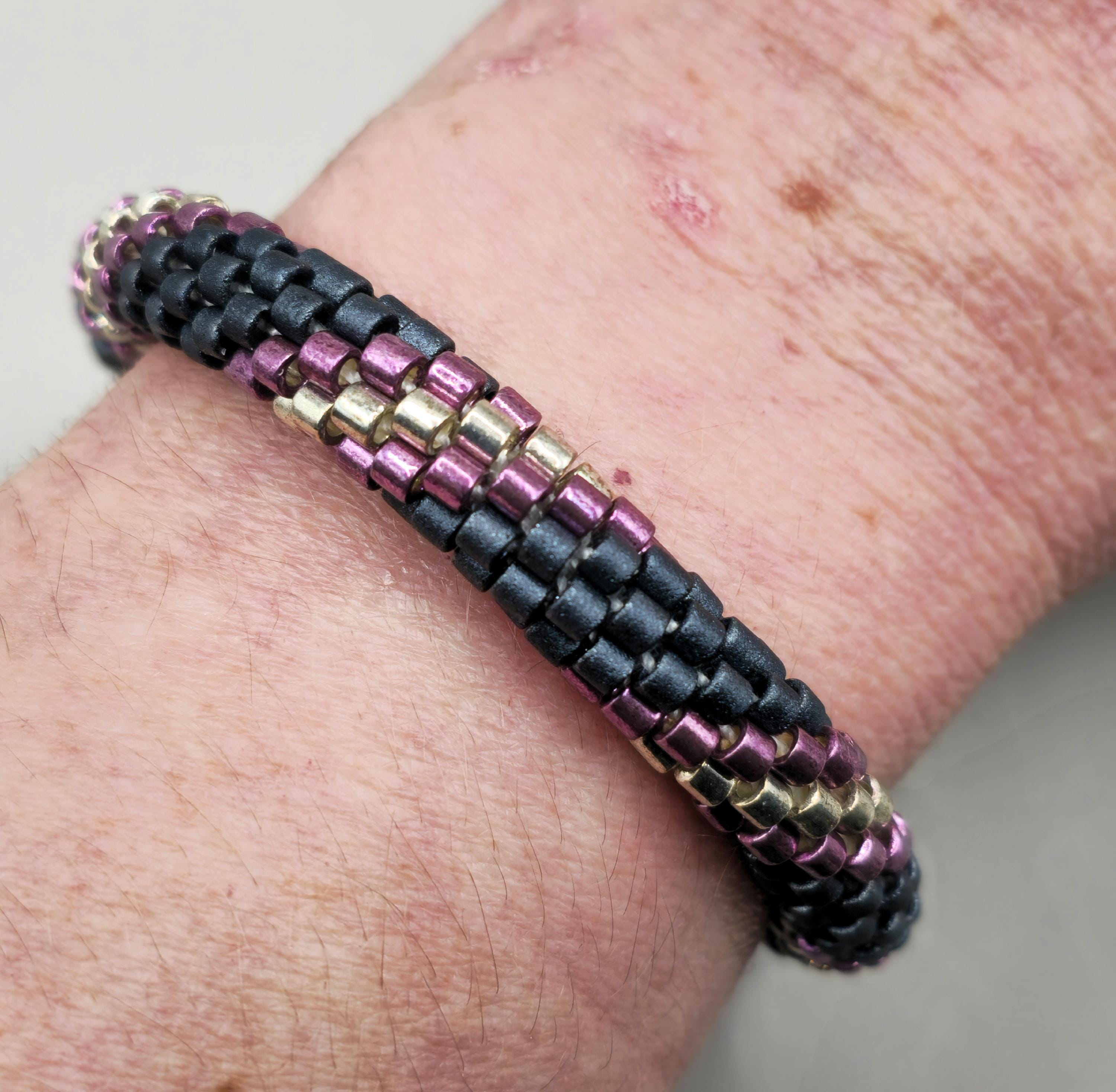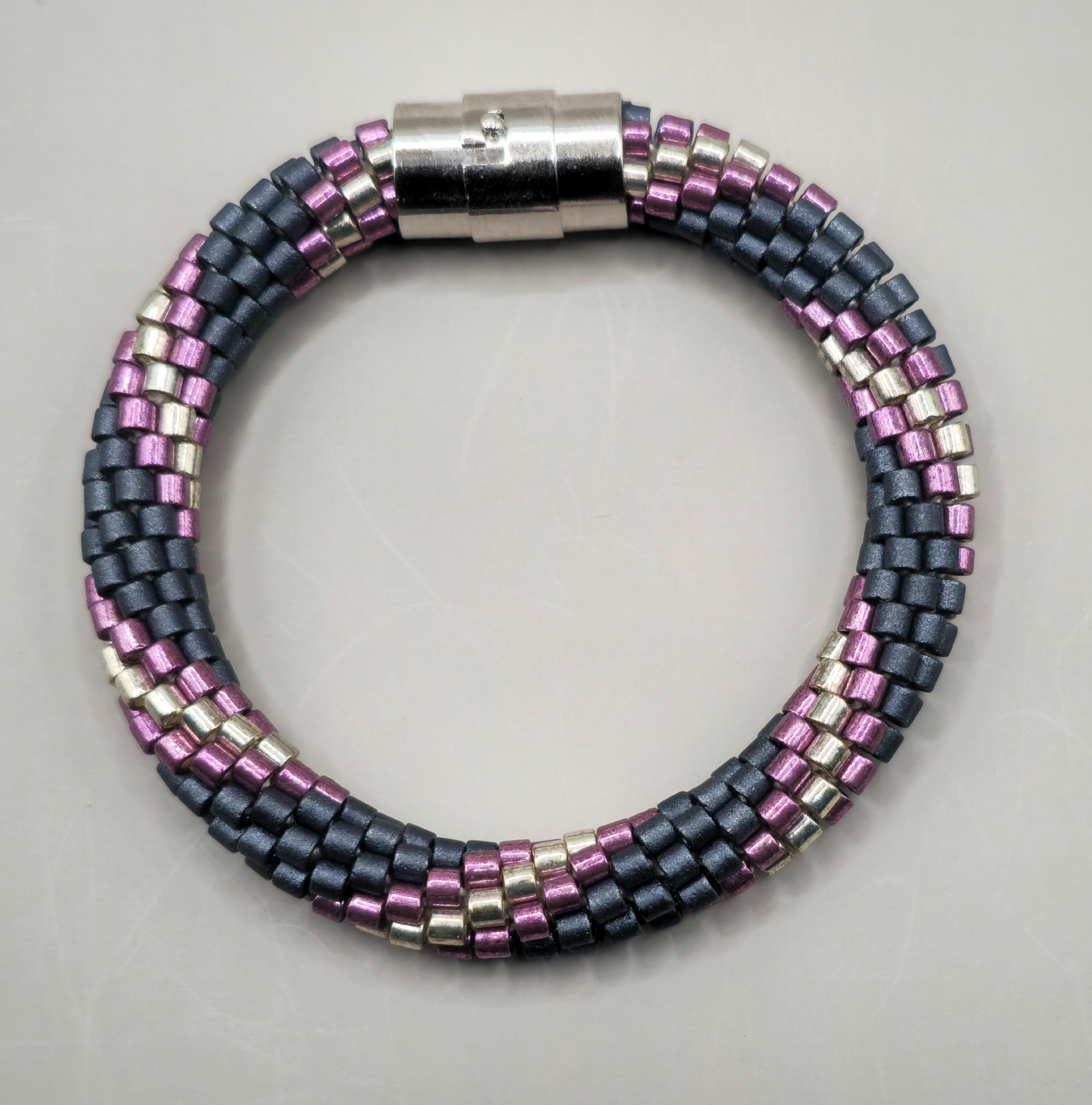 This bracelet measures 8 inches long, including the clasp. It is made from high-quality glass seed beads and finished off with a magnetic safety clasp. One small twist and your bracelet is secure.