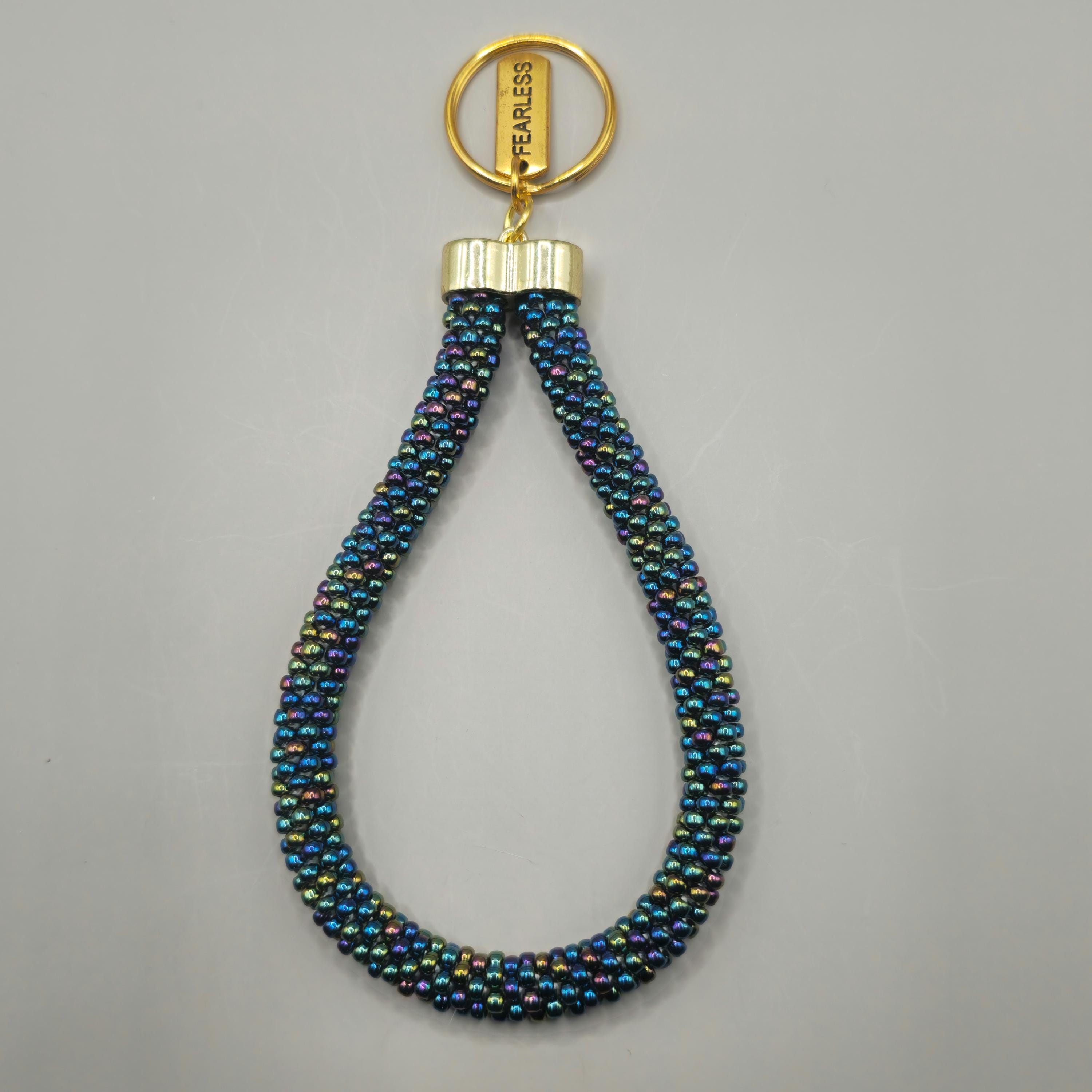 Carefully crocheted with high-quality thread and adorned with shimmering beads, this wristlet offers both durability and eye-catching elegance. Its lightweight yet sturdy design makes it perfect for holding keys.
