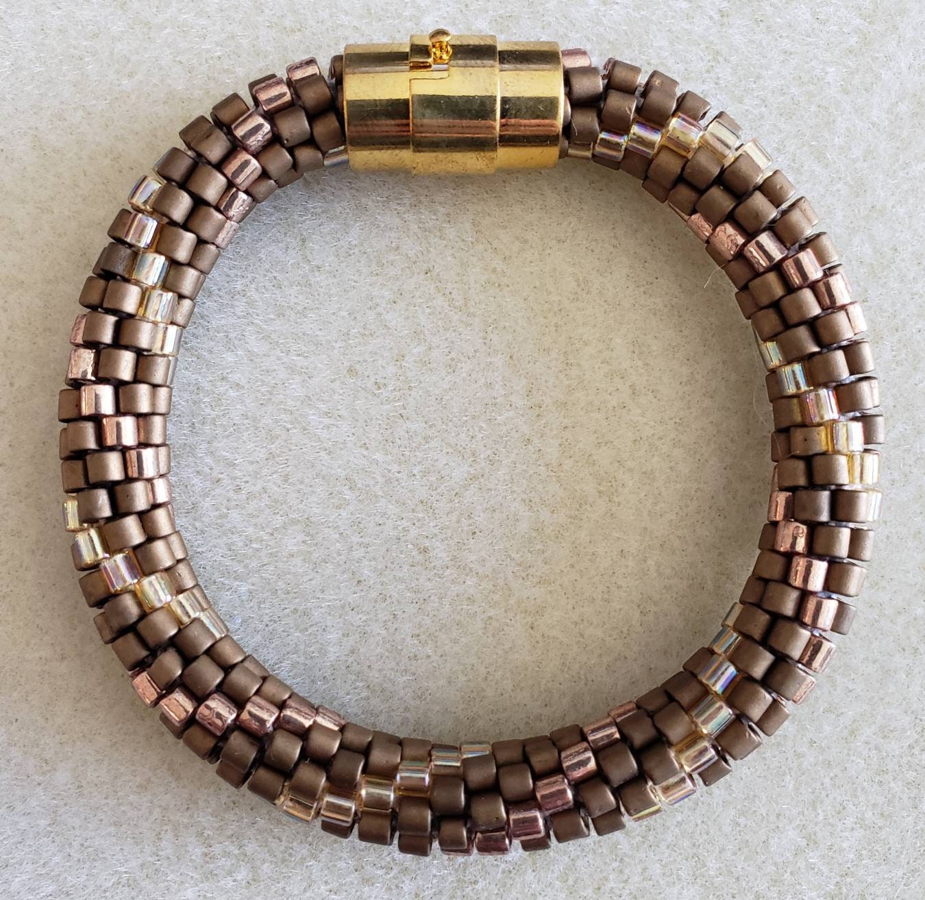 This bracelet measures 8 inches long and is made from high quality glass seed beads and finished off with a safety magnetic clasp. One small twist and your bracelet is secure.