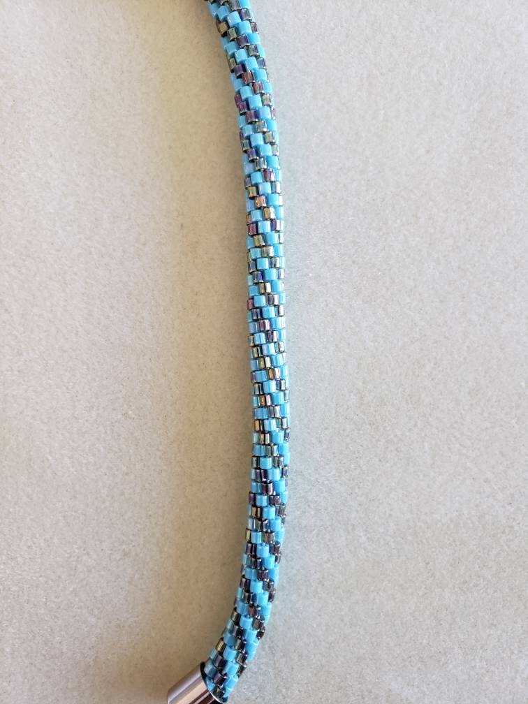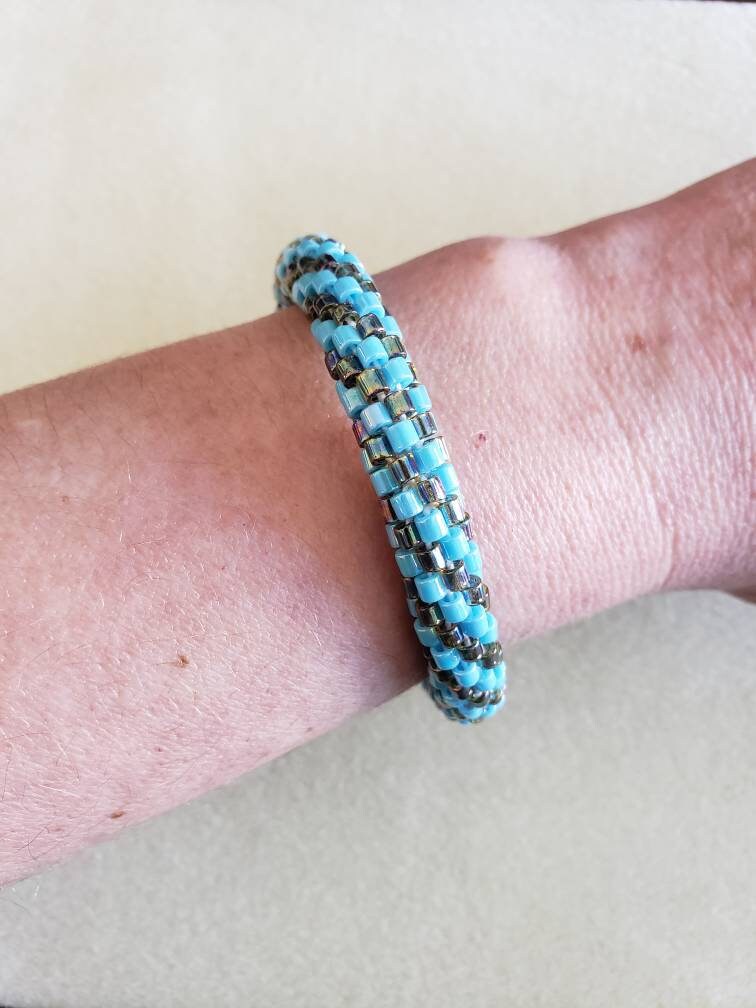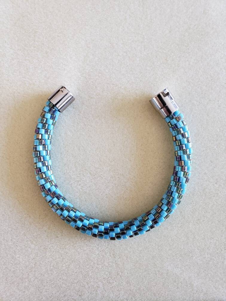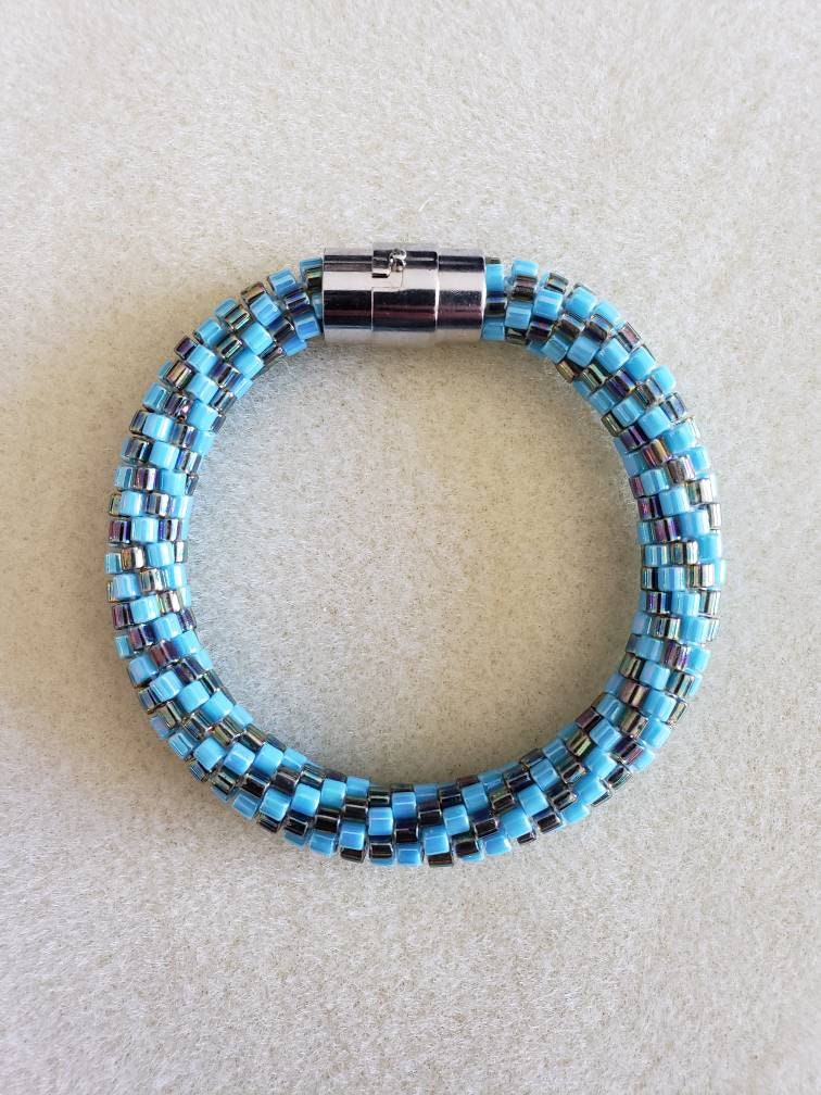 This bracelet measures 8 inches long and is made from high quality glass seed beads and finished off with a safety magnetic clasp. One small twist and your bracelet is secure.